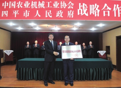 1月17日,四平市被中国农业机械工业协会授予“现代农机装备区域创新示范基地”,为东北地区首家。双方正式建立战略合作关系,致力于推动地区农机装备产业跃升发展,将四平培育成为国家农业机械装备工业重要基地。