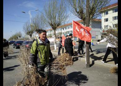 每个干部十棵丁香树的任务,顶着八级的大风,从八点半一直工作到十一点多,八百多丁香树秧苗在南崴子街道两旁安居落户。大家用实际行动和辛勤的汗水为美化街道环境贡献了自己的微薄之力!